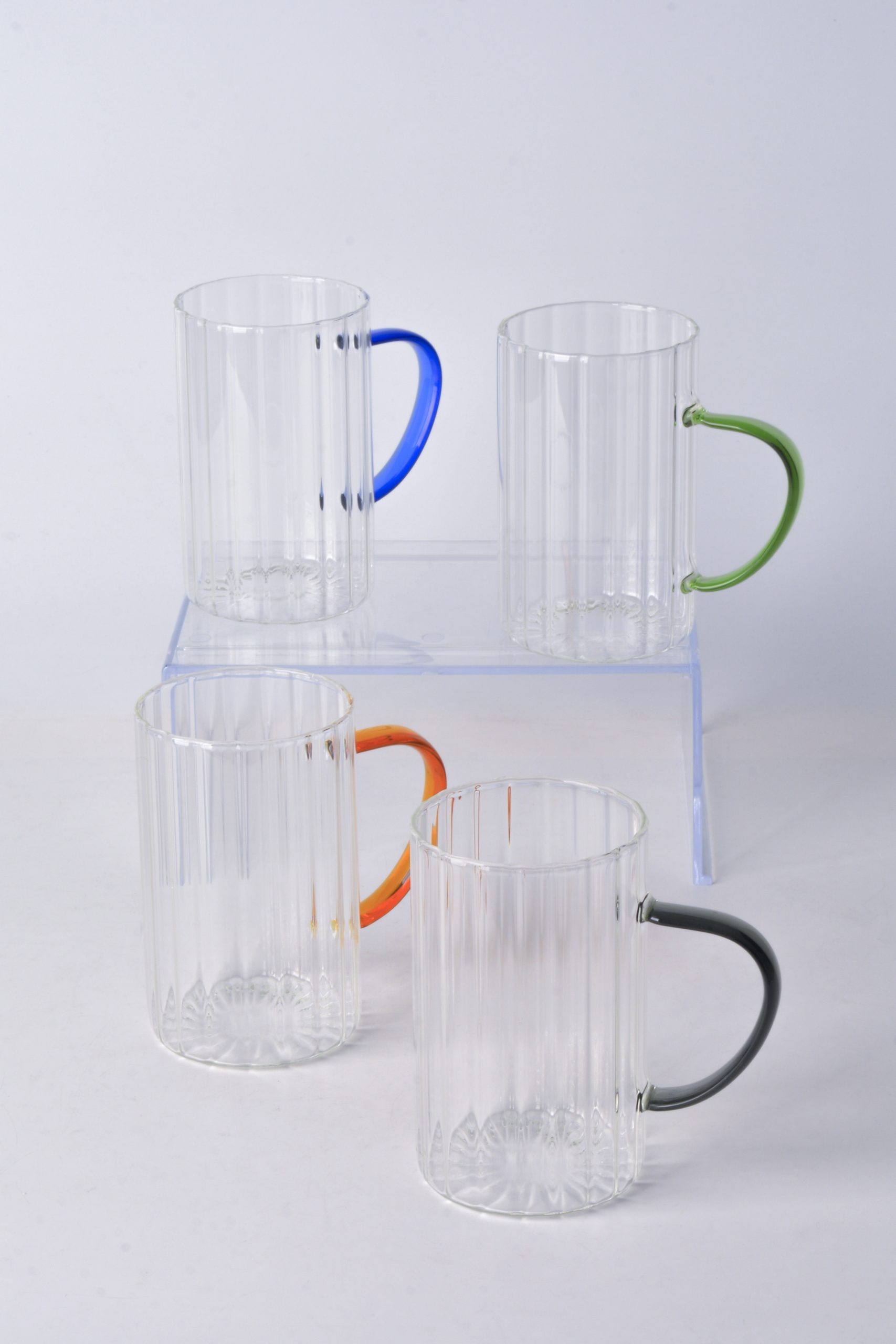 DÖRTLÜ RENKLI SAPLI CAM KUPA * 450 ML